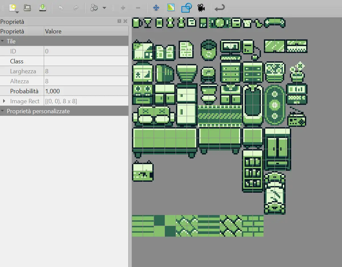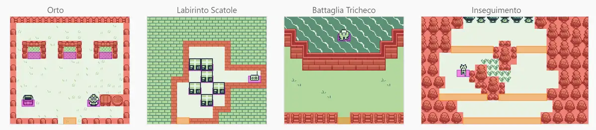 Per creare le singole mappe (cioè tutti gli ambienti, sia esterni che interni) ho usato Tiled.