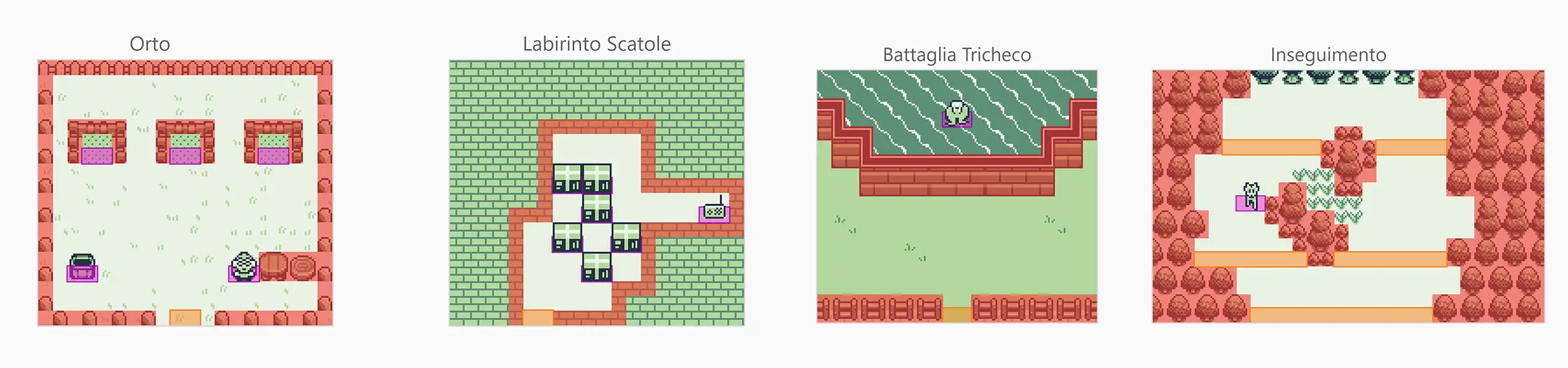 Nel 2024 ho programmato un videogioco per Game Boy. È un gioco di azione/avventura con una sequenza di platform e una di combattimento, che racconta una semplice storia sull’amicizia con protagonista un mio amico che interagisce con tutte le altre persone della compagnia.