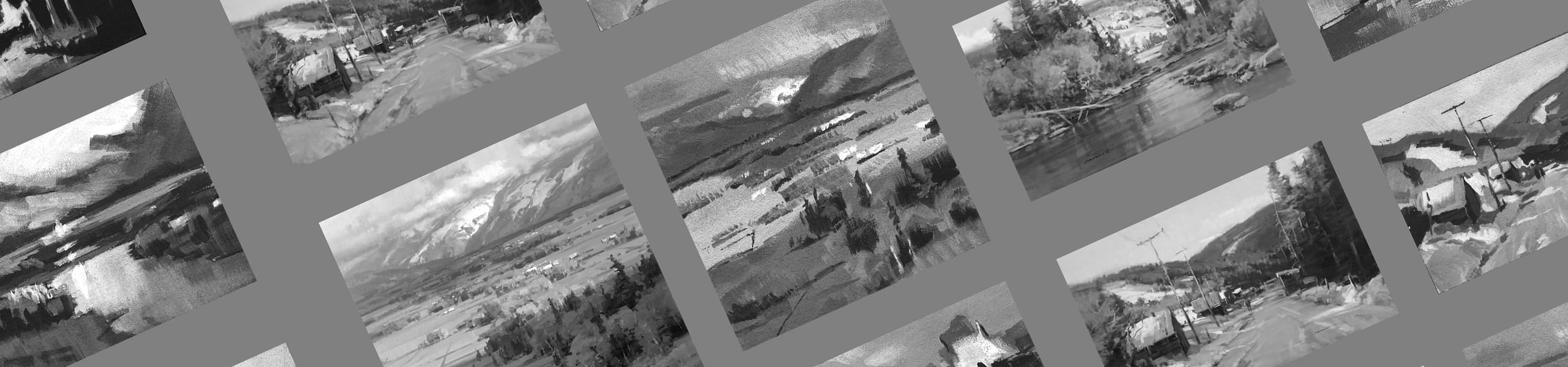 Prima settimana di corso di pittura di paesaggio: studi tonali di dipinti