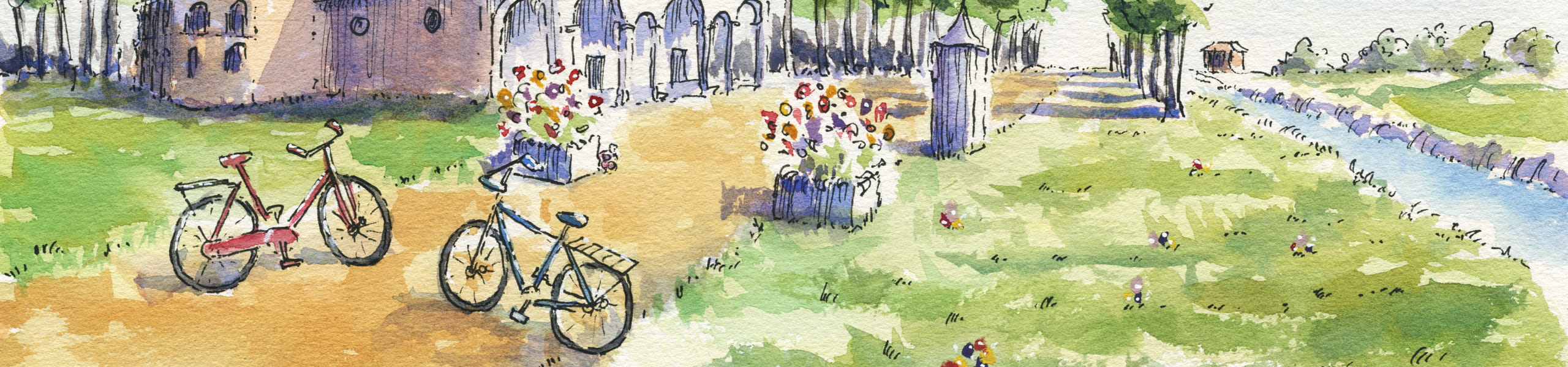 Gli sposi sono appassionati cicloturisti, mi piaceva quindi l’idea di raccontare il loro percorso insieme partendo da due biciclette parcheggiate sulla sinistra, dirette verso l’orizzonte sulla destra oltre gli alberi, passando per la chiesa dove avrebbero celebrato il loro matrimonio.