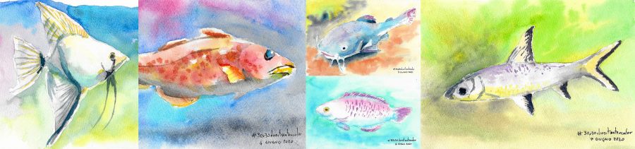 La prima settimana di #30x30DirectWatercolor challenge se n’è andata: a che punto sono con i miei pesci ad acquerello?