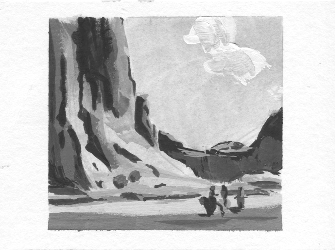 Abituato all’acquerello, che uso generalmente in sketch disegnati prima a penna, non ho mai affrontato un tipo di pittura opaca come può essere quella a olio, acrilico o gouache.